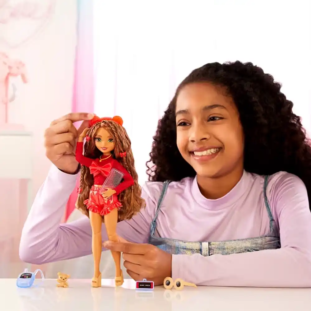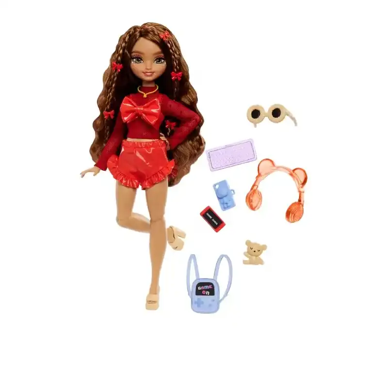 عروسک ترزا با موهای بلند قهوهای و استایل شیک و کفشهای لژدار یه دختر عاشق گیم و بازی ویدئوییه. اون یه سِت گیمری مثل کیبورد، کولهپشتی مخصوص بازی، هدفون و گوشی موبایل و عینک هم همراه خودش داره.