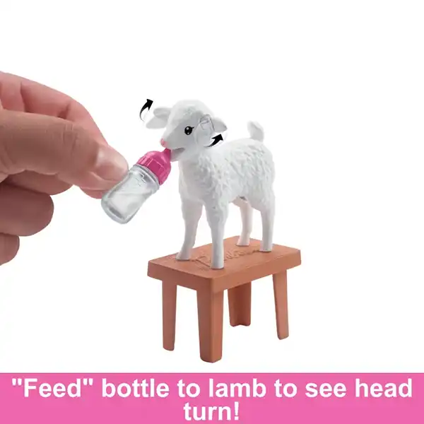 باربی مهربون تو نقش دامپزشک با لباس‌های بانمک و خوشگلش آماده‌ست که بره کوچولو رو معاینه کنه. جالبه که بدونید وقتی به بره کوچولو با شیشه‌ی مخصوصش شیر بدید؛ گوش‌هاش تکون میخوره.