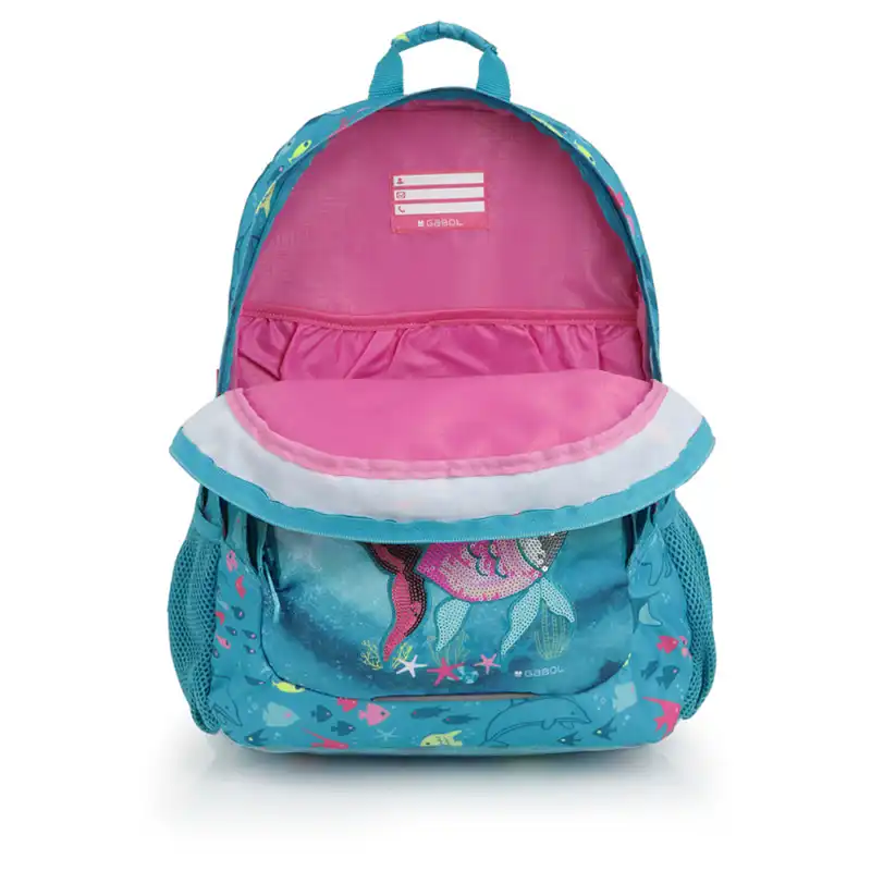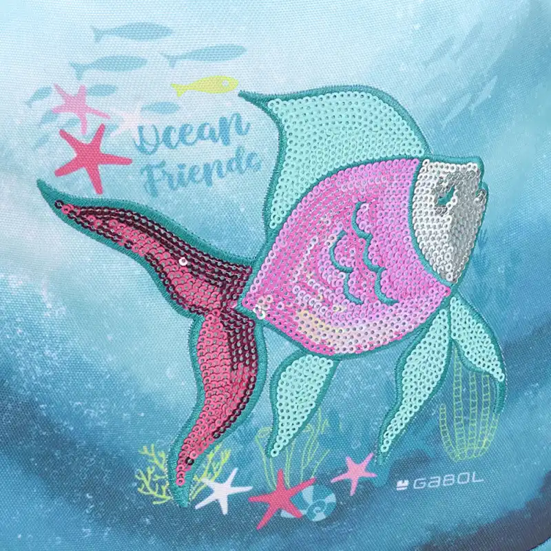 کوله پشتی دخترانه گابل Gabol مدل ACQUA، با طرح خاص ماهی پولکی، یه انتخاب جذاب و شیکه. این کوله سه تا محفظه بزرگ زیپ‌دار و جای تبلت داره. جنس کوله ضدآبه. پشتی نرم و بندهای راحتش باعث می‌شه به کمر فشار نیاد و فاقد مواد مضر مثل PVC هست.