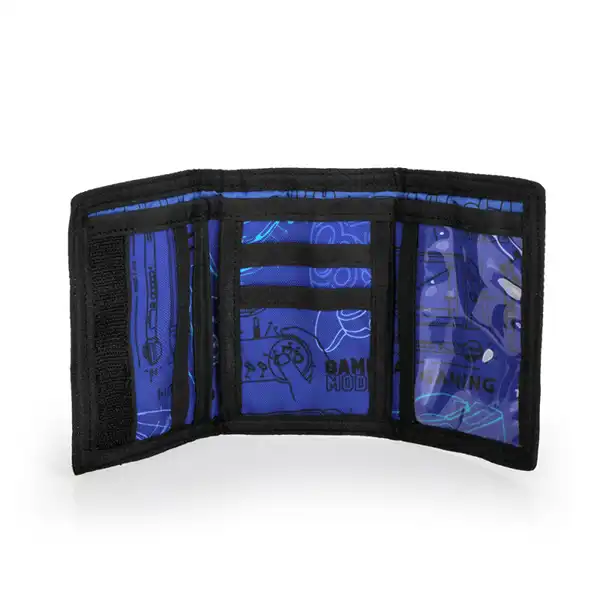 کیف پول طرح GAMING، یه محفظه زیپدار برای نگهداری سکه و اسکناس، پنج محفظه بدون زیپ برای کارت و یه محفظه شفاف برای کارت شناسایی داره.