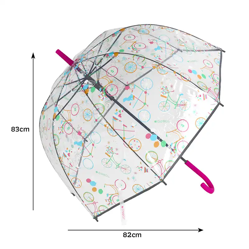 چتر شفاف گابل مدل Fiori، با طول 83 سانتی‌متر در حالت بسته و قطر 82 سانتی‌متر در حالت باز، برای کودکان و بزرگسالان مناسبه. این چتر به دلیل میله‌های فایبرگلاس در برابر باد مقاوم بوده و با مکانیزم اتوماتیک به راحتی باز می‌شه.