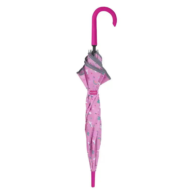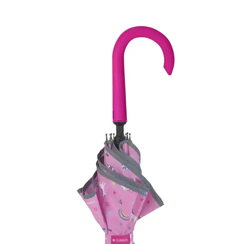 چتر گابل مدل Rainbow، با طول 82 سانتیمتر و قطر 83 سانتیمتر در حالت باز، برای کودکان و بزرگسالان مناسبه. این چتر به دلیل میلههای فایبرگلاس در برابر باد مقاوم بوده و با مکانیزم اتوماتیک به راحتی باز میشه.