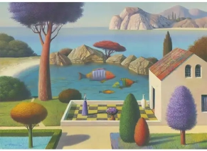 نقاشی «ماهی‌های بزرگ» اثر اوگنی گوردیتس نمونه‌ای شاخص از سبک سوررئالیسم آرام اوست. سبکی که با ترکیب عناصر غیرواقعی در فضایی شاعرانه و آرام، مخاطب را به سکون و تأمل فرا می‌خونه. ماهی‌ها با ابعادی غیرمعمول بزرگ و در مرکز تصویر جا گرفتن؛ این اغراق تو اندازه نگاه بیننده را به‌طور مستقیم به اون‌ها معطوف می‌کنه.
