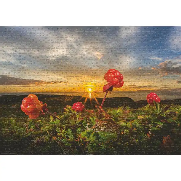 پازل 1000 تکه هیه طرح کلودبری تصویری از یه منظره طبیعی کم‌نظیر رو به نمایش گذاشته که توسط عکاس نروژی اودون ریکاردسن ثبت شده. جایی که توت‌های وحشی قرمز در مرکز تصویر قرار گرفتن و نور گرم غروب پشت سرشان به شکل پرتوهای طلایی روی سطح گیاهان پخش شده. ترکیب آسمان پهناور با ابرهای کشیده و ترکیب رنگ‌های زرد، نارنجی و آبی، حال‌وهوای آرام و درعین‌حال چشمگیری به تصویر داده.