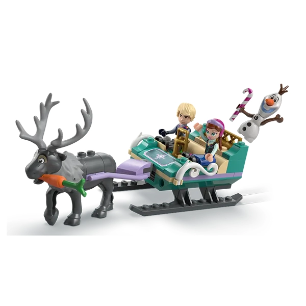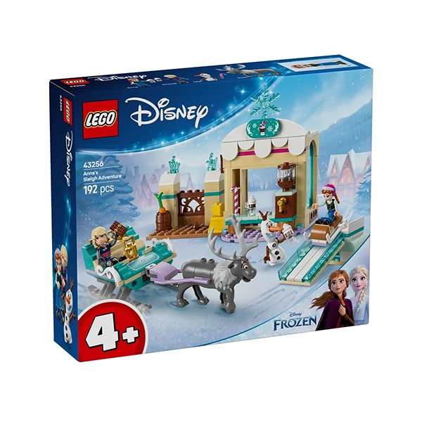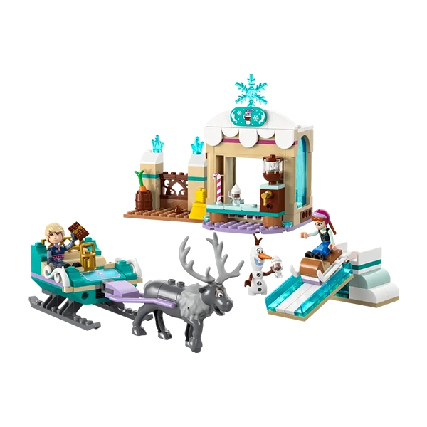 ست لگو دیزنی، «ماجراجویی سورتمهی آنا» دنیای برفی فروزن رو با سورتمه، غرفهی شکلات داغ، اصطبل و تپهی سورتمهسواری و 2 مینیدال از آنا و کریستوف، یه فیگور اولاف و یه فیگور سون، گوزن شمالی کریستوف برای شما بازسازی میکنه.