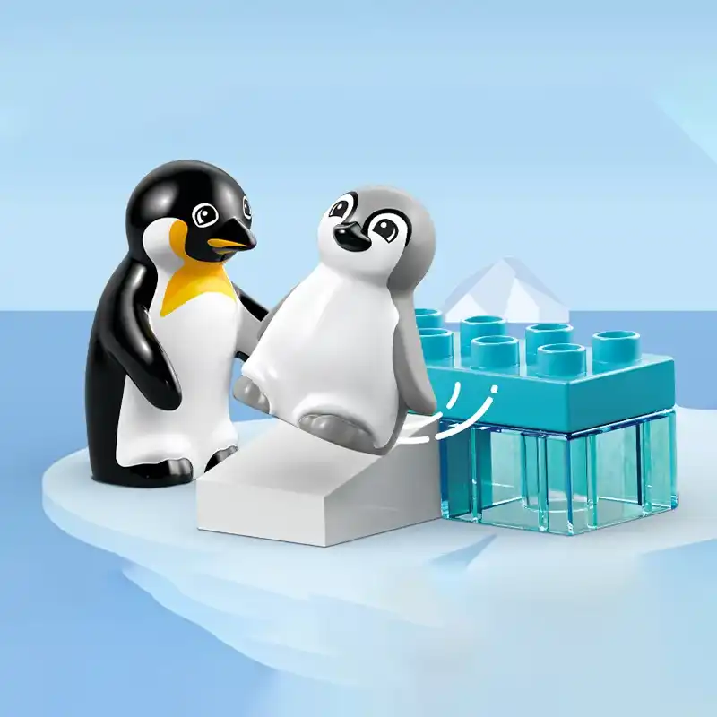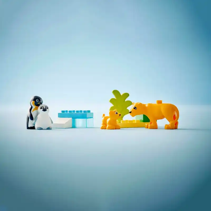 لگو دوپلو مدل حیوانات وحشی با فیگورهای پنگوئن و شیر، یه اسباببازی برای آموزش همدلی، مراقبت از حیوانات و تقویت مهارتهای حرکتی کودکان نوپاست.