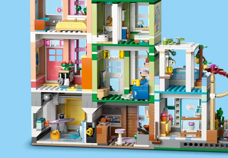 ست لگو فرندز آپارتمانها و فروشگاههای شهر هارتلیک برای بچههای بالای 12ساله که عاشق ساختن، بازی و خلق ماجراجوییهای دوستانه هستن. توی این مجموعه، بچهها میتونن آپارتمانها و فروشگاههای رنگارنگ بسازن، با مینیدالها و گربهها بازی کنن و داستانهای خودشون رو خلق کنن.