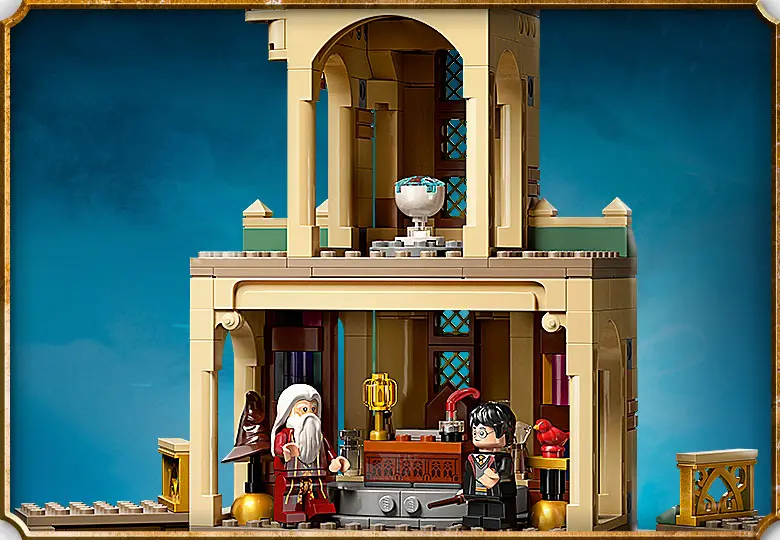 با ست لگو هری پاتر دفتر دامبلدور، شما میتونید با شمشیر گریفیندور، ردای نامرئی و حوض جادویی ماجراجویی کنید. این مجموعهی چندطبقه پر از جزئیاته و شما رو مستقیم میبره به دنیای جذاب داستانهای هری پاتر.