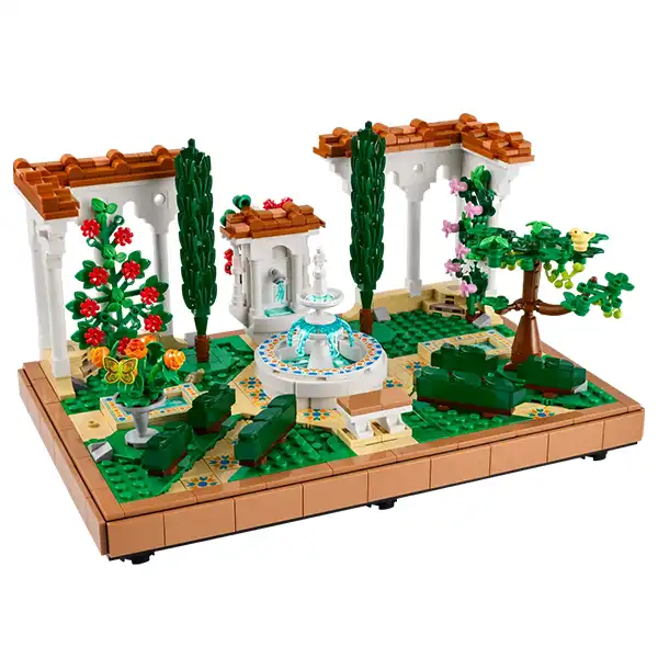 لگو باغ فواره یه فضای سبز پر از گل و گیاههای زیبا و خاصه که نمایی آرامشبخش و چشمنواز رو به نمایش میذاره! طراحی این ست از باغهای مدیترانهای و اروپایی با فواره چندطبقه، پرگولاها و مسیرهای سنگفرش شده الهام گرفته شده.