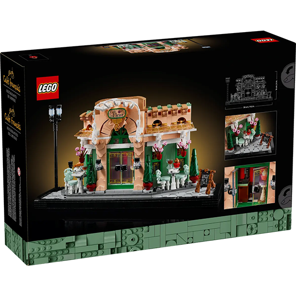 درست مثل یه کافه‌‌ فرانسوی میز و صندلی‌هاش رو سنگ‌فرش پیاده‌رو چیده شدن. روی میزها اقلام یه صبحانه یا عصرانه فرانسوی مثل نون‌ کروسان، فنجون‌های قهوه و حتی روزنامه‌ست! جزئیات زیاد و طراحی دقیق باعث شده این مدل 1101 قطعه‌ای لگو بیشتر شبیه به یه ماکت هنری باشه! این ست از لگو آیکونز مناسب افراد بالای 18 سال طراحی شده و  ساختنش یه تفریح آرامش‌بخشه.