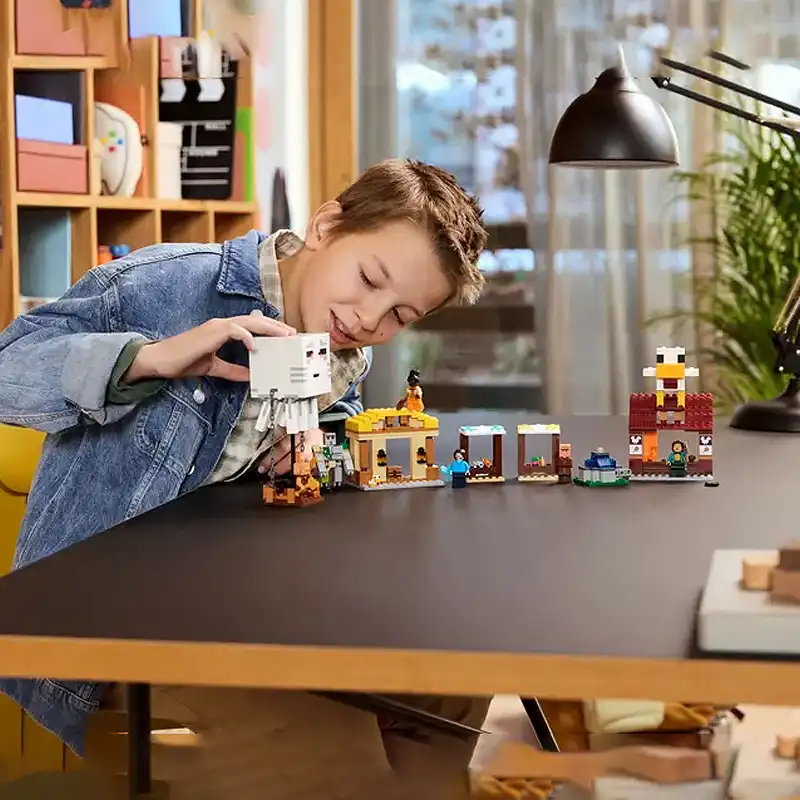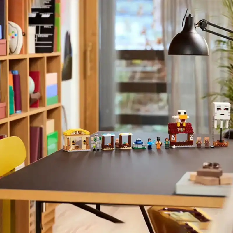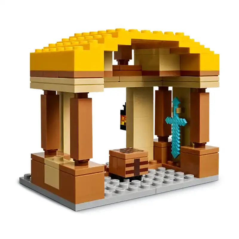 بالون غول‌پیکر یه دیسک‌انداز داره که باید در مقابلش از روستا محافظت کرد. این ست از لگو ماینکرفت، چندتا مینی‌فیگور با شخصیت‌های استیو، ناتالی، داون، مرد روستایی و حتی یه گولم آهنی (Iron Golem) متحرک داره که می‌شه باهاشون یه عالمه سناریوی اکشن ساخت.