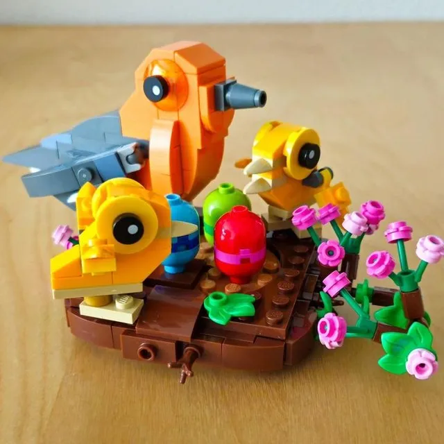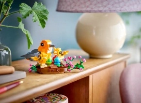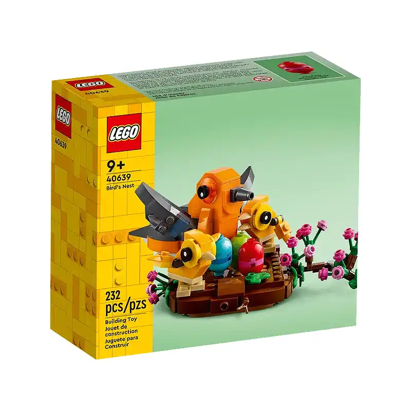 اگر دنبال یه هدیه خاص و زیبا برای دکوراسیون یا فعالیت آرامشبخش هستید، لگو مدل 40639 آشیانه پرنده (Bird’s Nest) انتخاب خیلی خوبیه. این مجموعه یه ست 232 قطعهای بامزه و کوچیکه که میشه باهاش یه آشیونه پر از جزئیات ساخت. داخل آشیونه یه پرنده با دو تا جوجه مینیاتوری نشسته و چندتا تخم مرغ رنگی هم کنارشونه. همه پرندهها و تخم مرغها قابل جابهجایی هستن و پرنده مادر بالهای متحرک داره. لگو آشیانه پرنده یه مدل تزئینی و مناسب برای دکور هست.