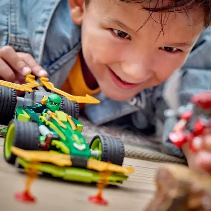 این ست لگو، یه ماشین مسابقه نینجایی مناسب بچه‌های 7 سال به بالاست که با کشیدن و رها کردن، ماشین به سرعت رو به جلو حرکت می‌کنه و در زمان ساختن لگو ، خلاقیت و مهارت‌های حرکتی ظریف بچه‌ها رو تقویت می‌کنه.