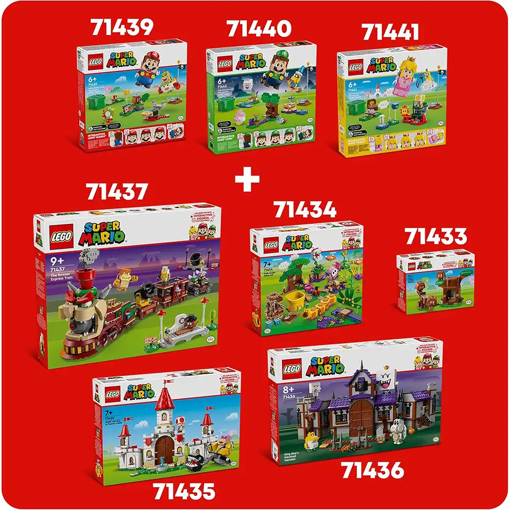 این ست شامل 4 فیگور ماریوی تعاملی، بوزر جونیور، یوشی و گومبا و سه بخش محیطی برای ساخت و بازیه و برای کودکان 6 سال به بالا خیلی مناسب و هیجان‌انگیزه. این مجموعه رو می‌شه با سایر ست‌های لگو سوپر ماریو ترکیب کرد تا چالش‌های بیشتری بسازه.