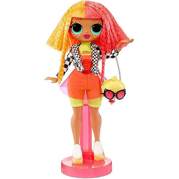 عروسک LOL Surprise سری OMG مدل Neonlicious دختر خاص یکی از مدل‌های شیک از گروه LOL Surprise هست که طراحی مدرن و فشنی داره و برای بچه‌ها از حدود 5 سال به بالا مناسبه. این مدل جزئی از سری Outrageous Millennial Girls هست و به‌خاطر ظاهر چشم‌گیر، لباس‌های چندلایه و اکسسوری‌های جذاب، واقعاً به چشم هر شخصی بولد نشون میده. وقتی بسته‌اش رو باز می‌کنی، علاوه بر خود عروسک با لباس‌های زیباش، کفش، آویز و گوشواره‌های قشنگش، برس مو و استند هم داخل جعبه هست که تجربه هیجان‌انگیزی از بازی و لباس‌پوشوندن به بچه‌ها می‌ده. حتی میتونی برای عروسک قشنگی که میخری خانه عروسک هم تهیه کنی.