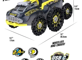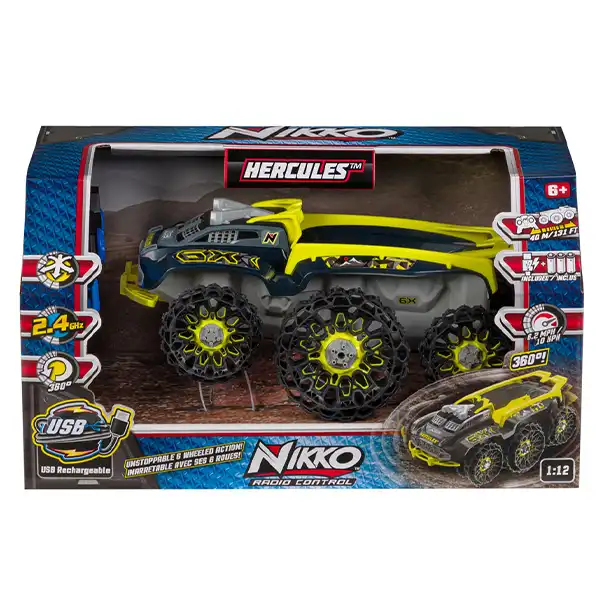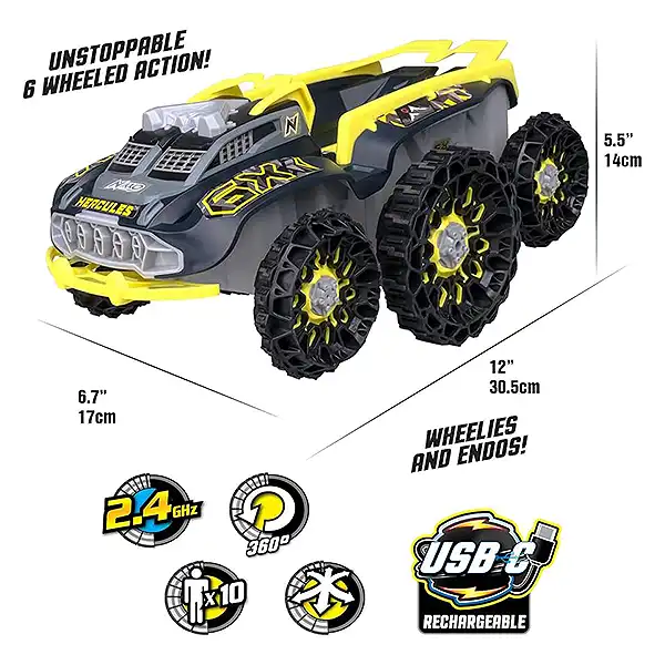 هرکولس، آفرود 6 چرخه با باتری قابل شارژ و کنترل 2.4 گیگاهرتزی میتونه روی زمینهای ناهموار، شیبهای 45 درجه و موانع حرکت کنه، حرکات نمایشی مثل چرخش 360 درجه و ویلی انجام بده و تا 10نفر همزمان باهاش مسابقه بدن!