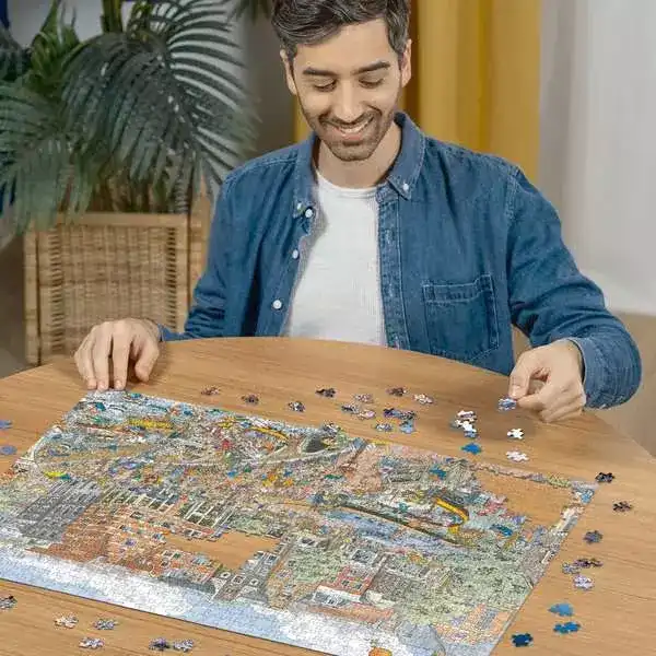 این پازل با تصویرسازی کارتونی و پرجزئیات Frans Le Roux، آمستردام رو در فضایی کارتونی، شلوغ و پرانرژی نشان می‌ده. این سبک کمیک‌وار و پرجزئیات، حال‌وهوای واقعی شهر را با یه نگاه سرگرم‌کننده و داستان‌گو به تصویر کشیده و چیدن پازل را به تجربه‌ای جذاب تبدیل می‌کنه.