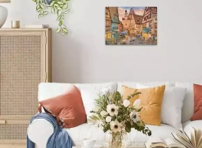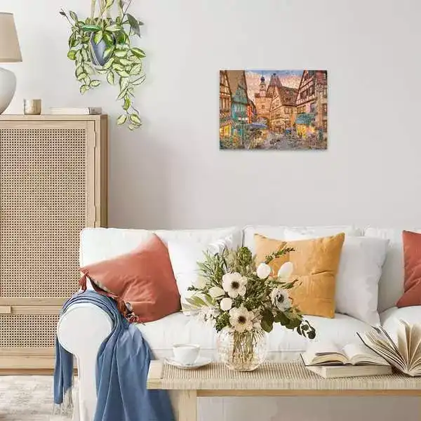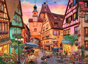 تصویر این پازل با رنگهای گرم و نور ملایم عصر، فضایی دلانگیز، رمانتیک و آرام خلق کرده. جزییات معماری سنتی، میزهای کافه کنار خیابان و منظره کوچک شهری با جلوهای دوستداشتنی، حس بودن تو یه شهر تاریخی جنوب آلمان رو تداعی میکنه. مناسب برای کسانی که از مناظر شهری هنری و پرجزئیات لذت میبرند.