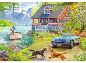 تصویری آرام و دل‌نشین از خانه‌ی تابستانی کنار دریاچه. این پازل با قطعات بزرگ‌تر و خوش‌دست‌تر نسبت به پازل‌های معمول طراحی شده تا چیدن اون برای همه سنین، به‌ویژه سالمندان، ساده و خوشایند باشه.