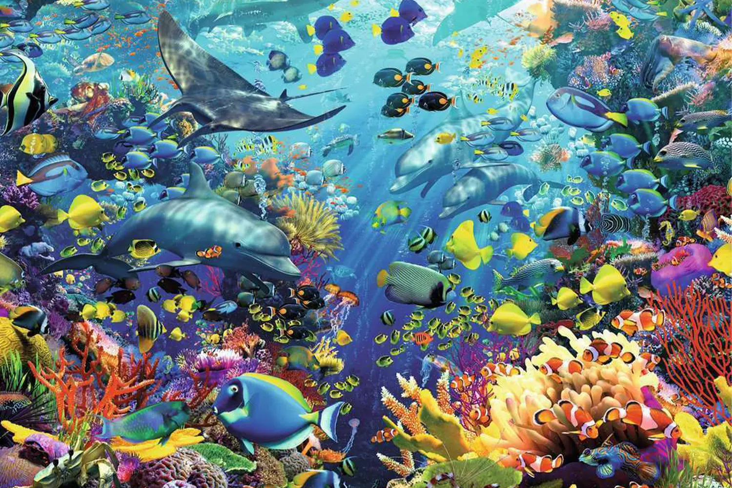 پازل Underwater Paradise از بزرگترین تولیدکننده پازل دنیا یعنی Ravensburger، یکی از طرح‌های برجسته در مجموعه پازل‌های بزرگسال این شرکت به‌شمار میره. این پازل با 9000 تکه از دنیای زیر آب، تصویر یه اکوسیستم دریایی شلوغ و رنگارنگ را به نمایش گذاشته، جایی که ماهی‌های گرمسیری، دلفین‌ها و مرجان‌های متنوع در میان رنگ‌های آبی، زرد، سبز و نارنجی، صحنه‌ای زنده و پرانرژی خلق کردند. تصویری که برای علاقه‌مندان به حیوانات دریایی و مناظر طبیعی بسیار دل‌نشین خواهدبود.
