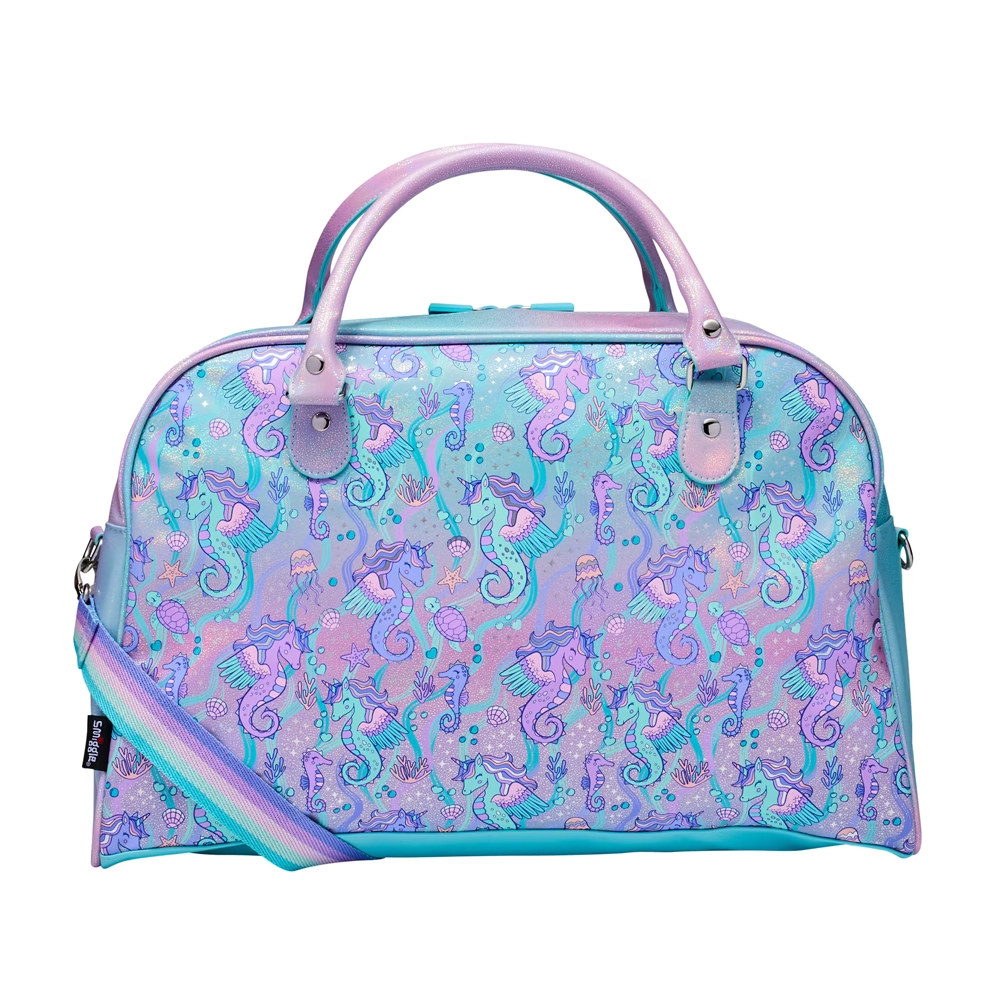 کیف مسافرتی اسمیگل طرح یونی کورن، یه کیف جمع‌وجور و براقه که برای سفرهای کوتاه یا حتی استفاده روزمره عالیه. داخلش فضای خوبی داره و جیب‌های جداگانه برای وسایل ریز داره و می‌تونی کیف رو با دسته‌های خودش یا بند شونه‌ای که داره، راحت حمل کنی.